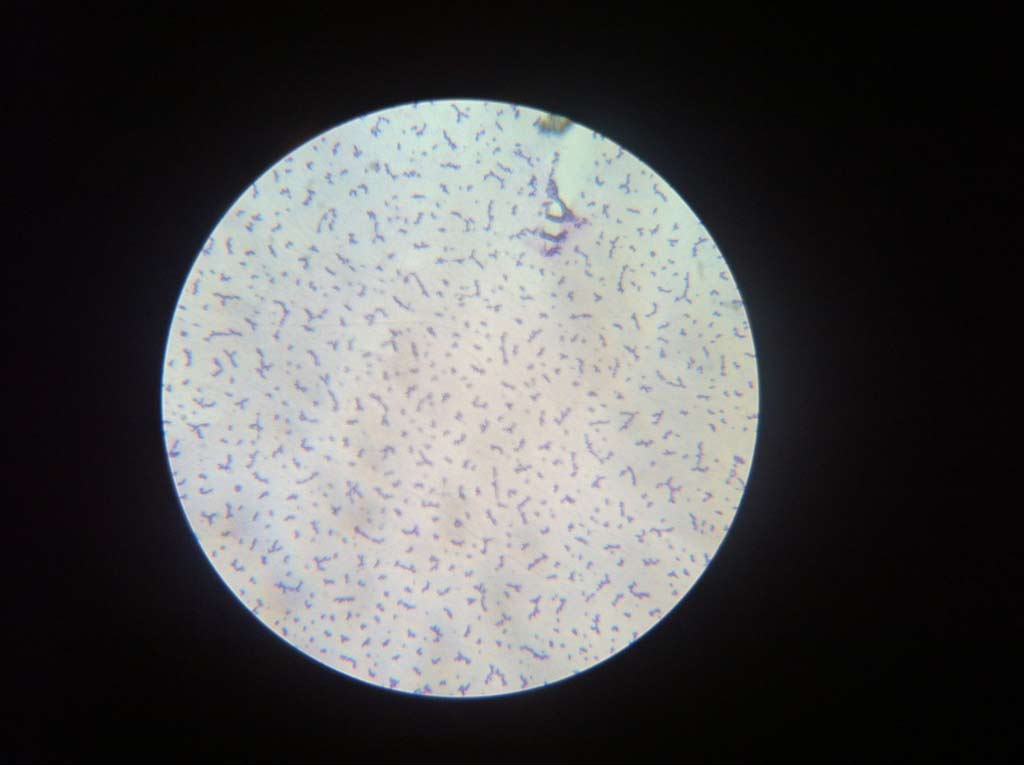 Microscopisch beeld van het gewrichtsvocht van een veulen. Bij dit veulen zijn er grote hoeveelheden ettercellen aanwezig. Dit wijst op een slechte afweer van het lichaam van het veulen waardoor bacteriën zich kunnen nestelen en vermenigvuldigen.